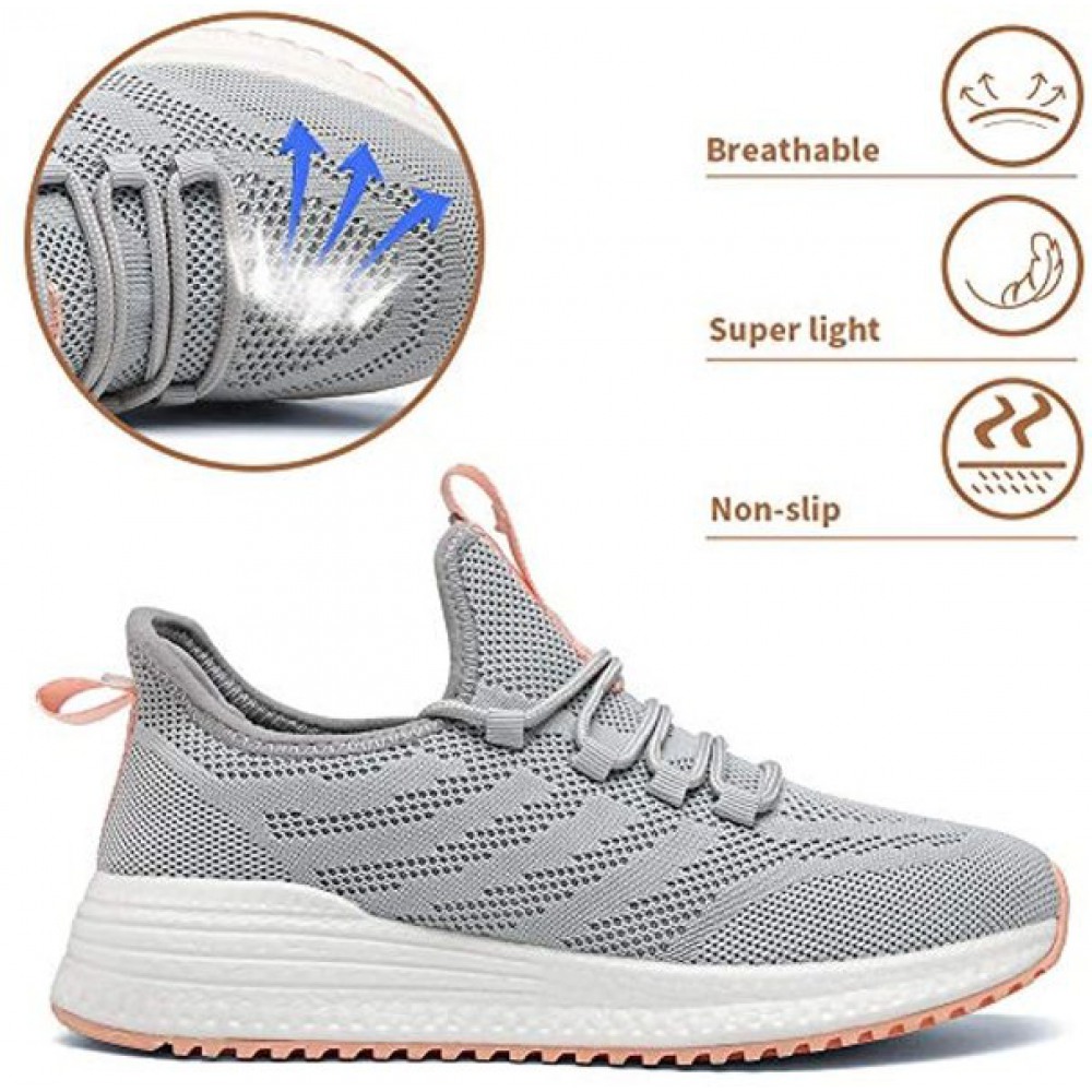 Women's Running Shoes Lightweight Non Slip Breathable Mesh Sneakers Sports Athletic Walking Work Shoes Grey